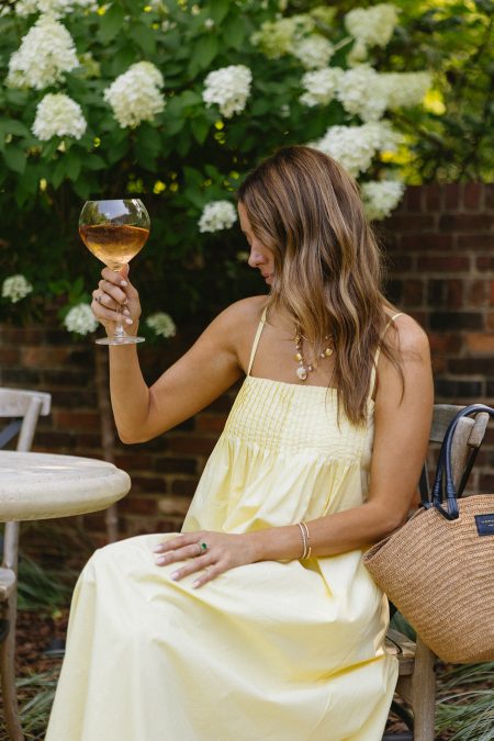 $323.00Details Yellow maxi dressThin adjustable spaghetti strapsPleated bodiceHidden side zipperFully lined Anti slip silicone strip above bustSide pockets Full length of a size medium from center of neckline: 44 inches Materials and Care Self: 100% cottonLining: 100% rayonHand wash coldLine dry All sale items are considered final sale.